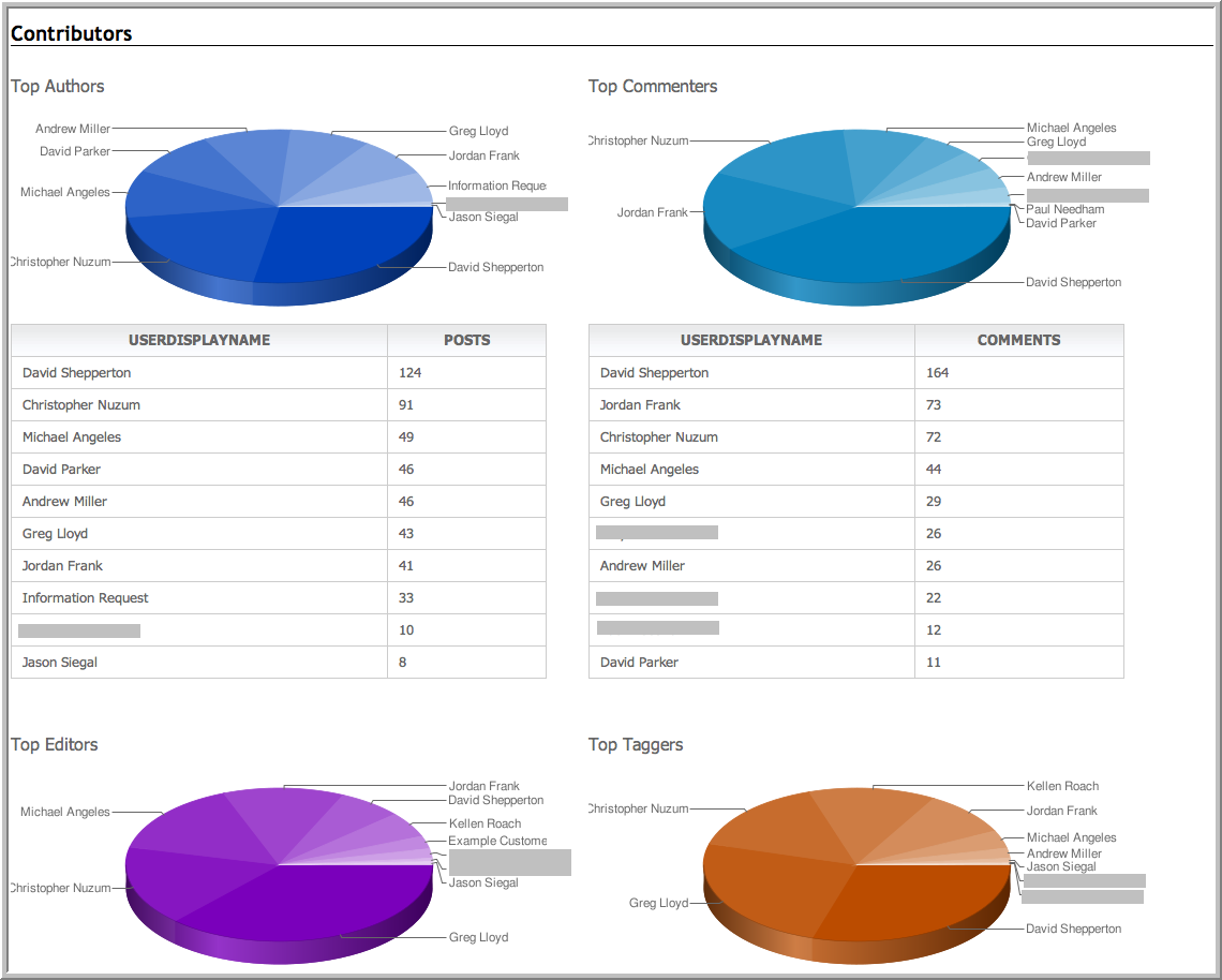 • Top authors, editors, commenters, taggers